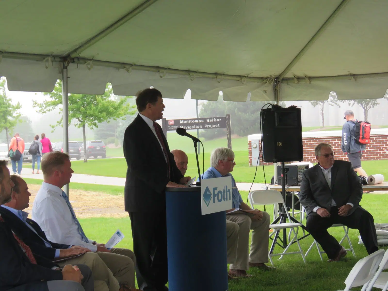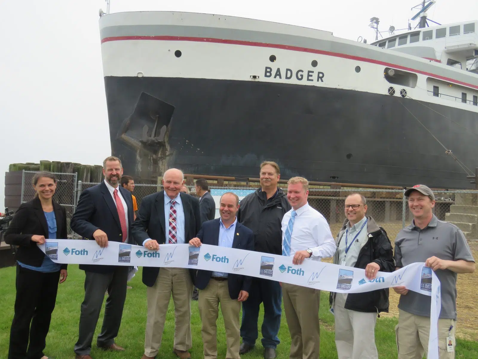 It may have been a foggy day down at the SS Badger dock in Manitowoc, but for those involved in the retainer wall repair project, it could not have been a better day. Many local and state dignitaries were on hand at the Badger Carferry dock on Friday to officially cut the ribbon on the new retainer wall, a project that was started in 2016, according to Lake Michigan Carferry President Bob Manglitz. “We flew over, and I was standing at the end of the dock…and it was like it was waving at you.”