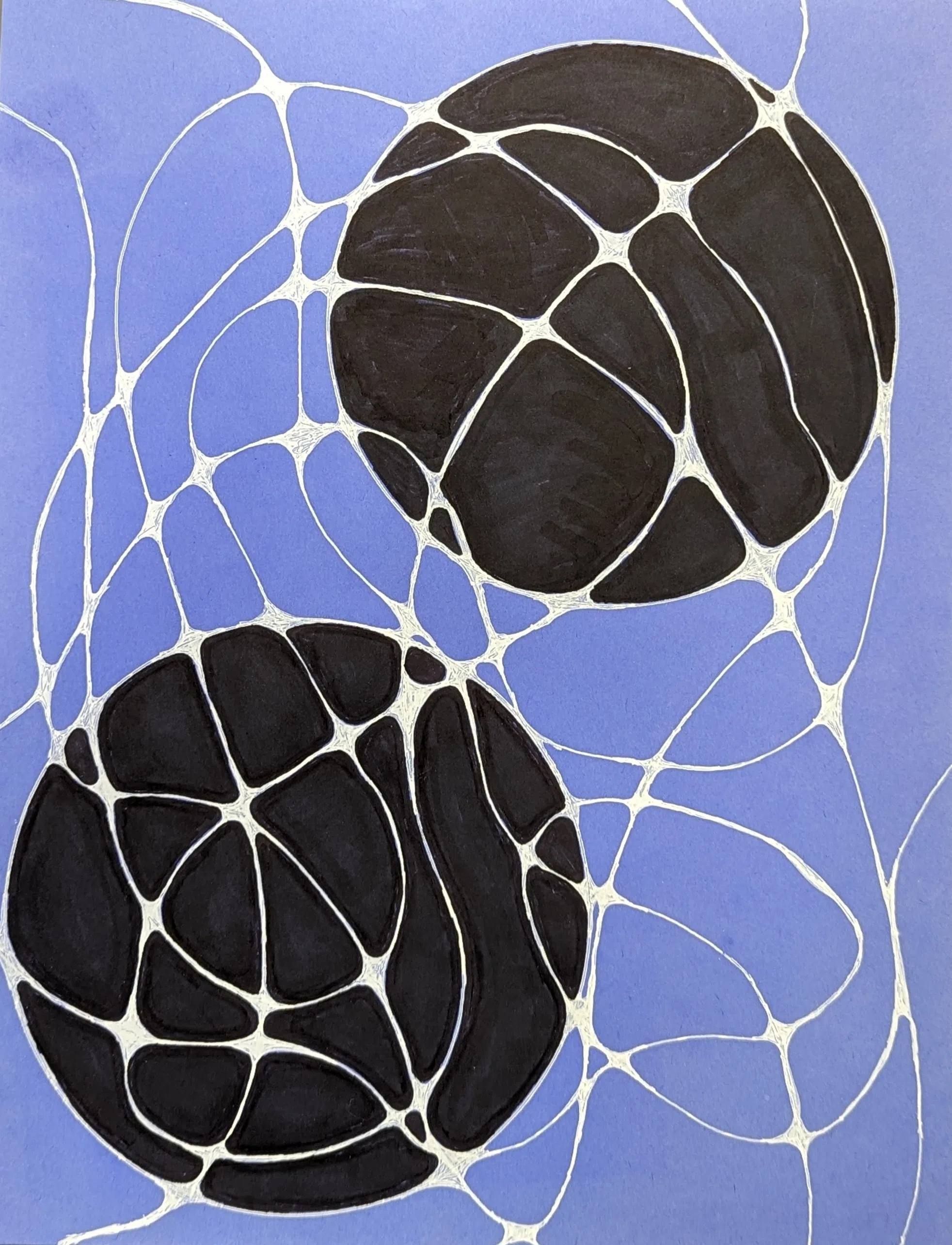And that’s all this is, just lines and basic geometric shapes on a page. It is incredibly soothing to see the lines come together and form patterns—or not! Each intersection of lines is rounded off to create a continuous flow throughout the paper. (The intersections look like the neurons that transmit chemical messages in our brains; I begin to see where Dr. Piskarev got the name.)