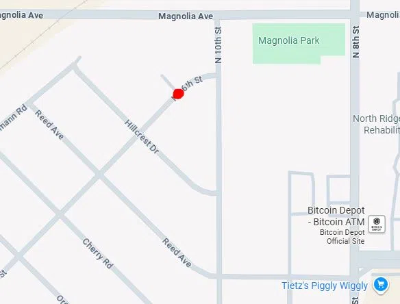 An intersection in a residential neighborhood on Manitowoc’s north side is closed off to traffic.