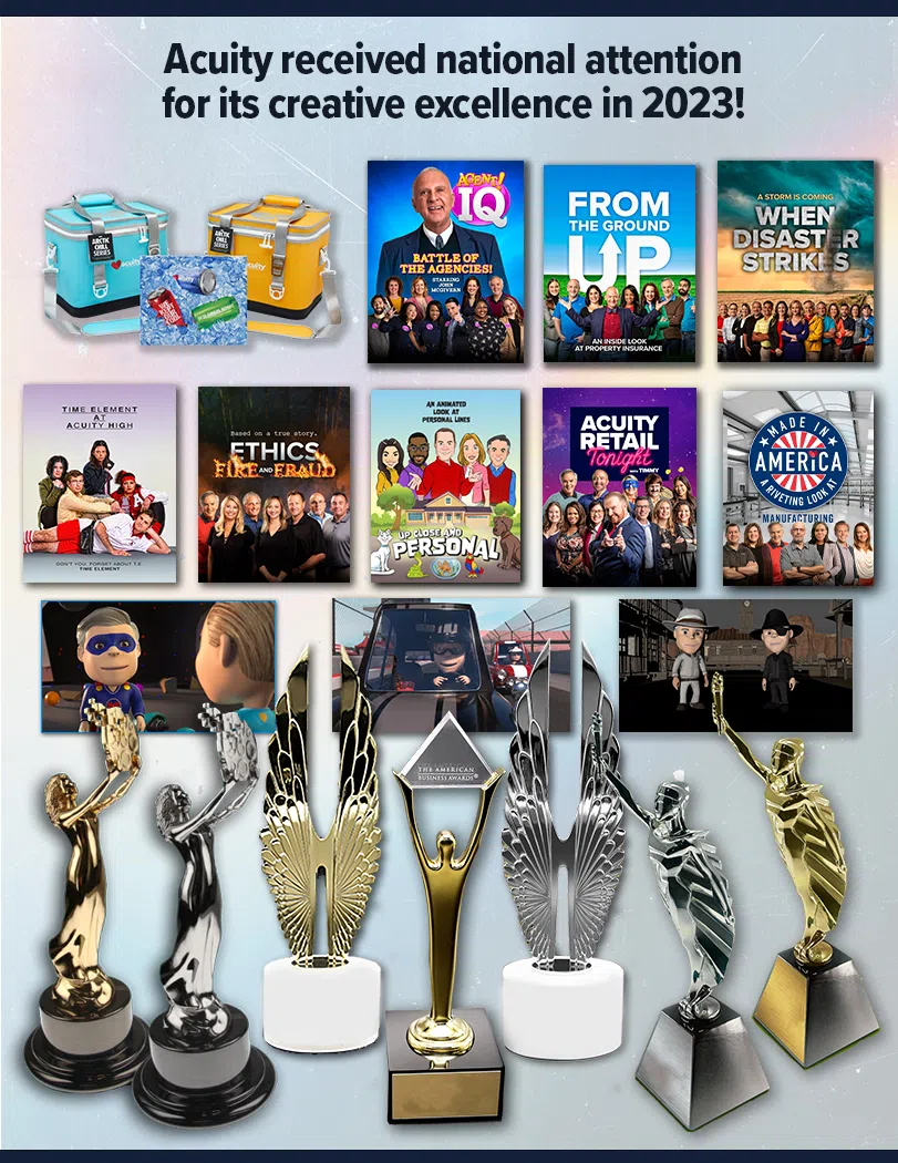Acuity Insurance announced that several of its communication projects have earned awards for creativity in national and international competition in 2023: Educational Video Awards-Acuity's continuing ...