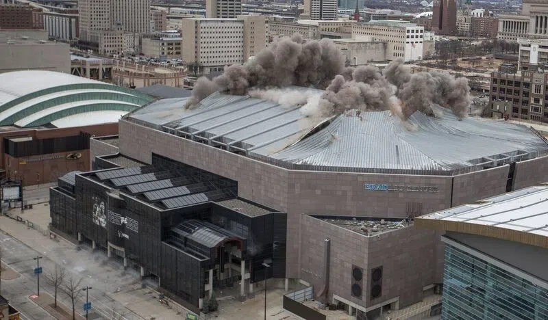 The next step of the Bradley Center tear down is complete. The roof of the former home of the Bucks was imploded Sunday morning in a controlled demotion. It is being destroyed with the Bucks now in th...