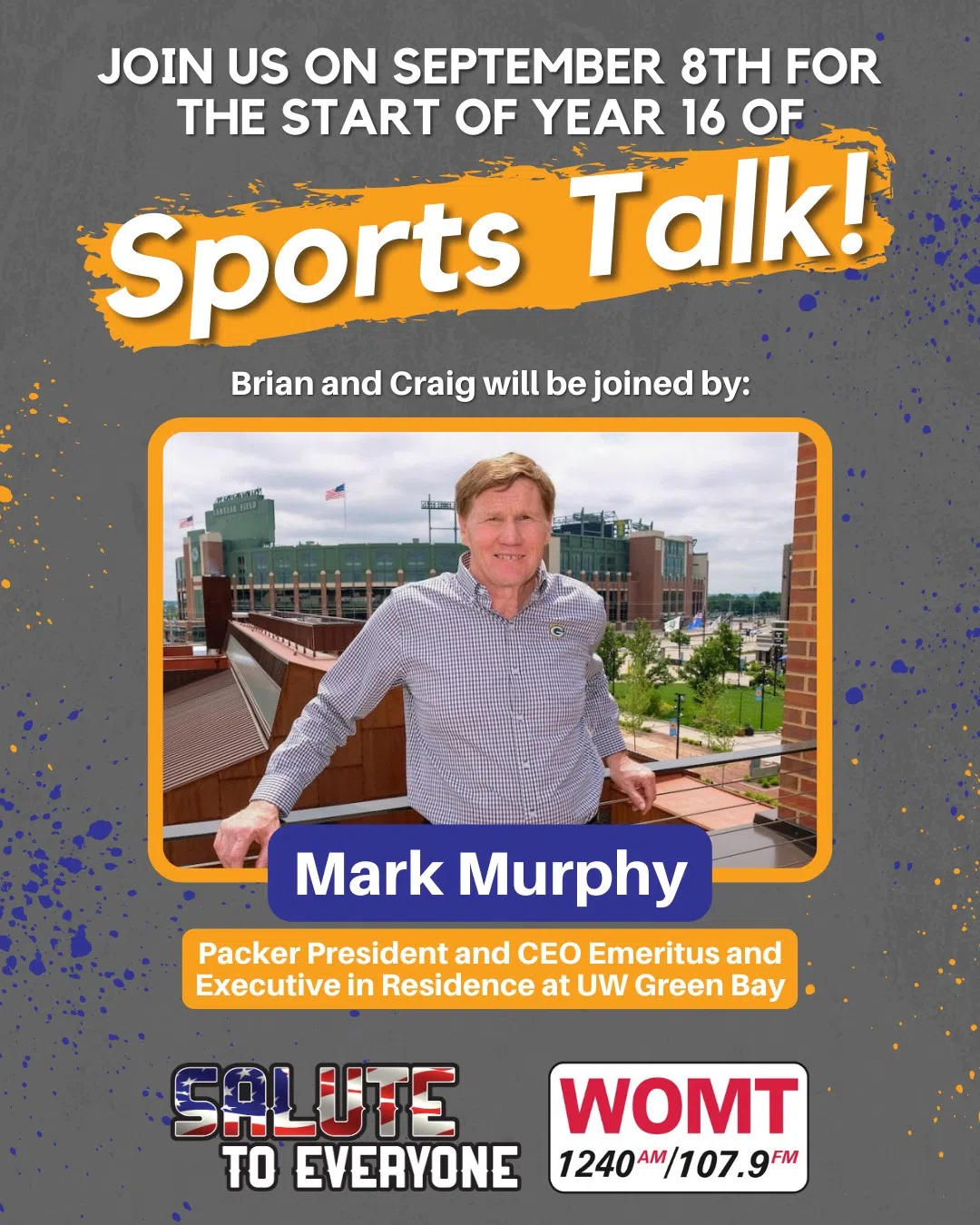 Mark Murphy, who's the only one known to have won a Super Bowl as a player and an executive, will be at Salute to Everyone in Manitowoc to kick off year 16 of WOMT Sports Talk on Monday, September 8th...