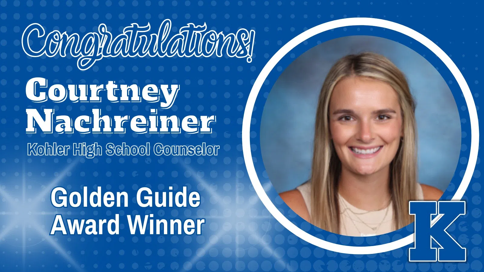 A faculty member at Kohler High School has been honored by a prestigious university. The district has shared that high school counselor Courtney Nachreiner has been awarded the Golden Guide Award from...