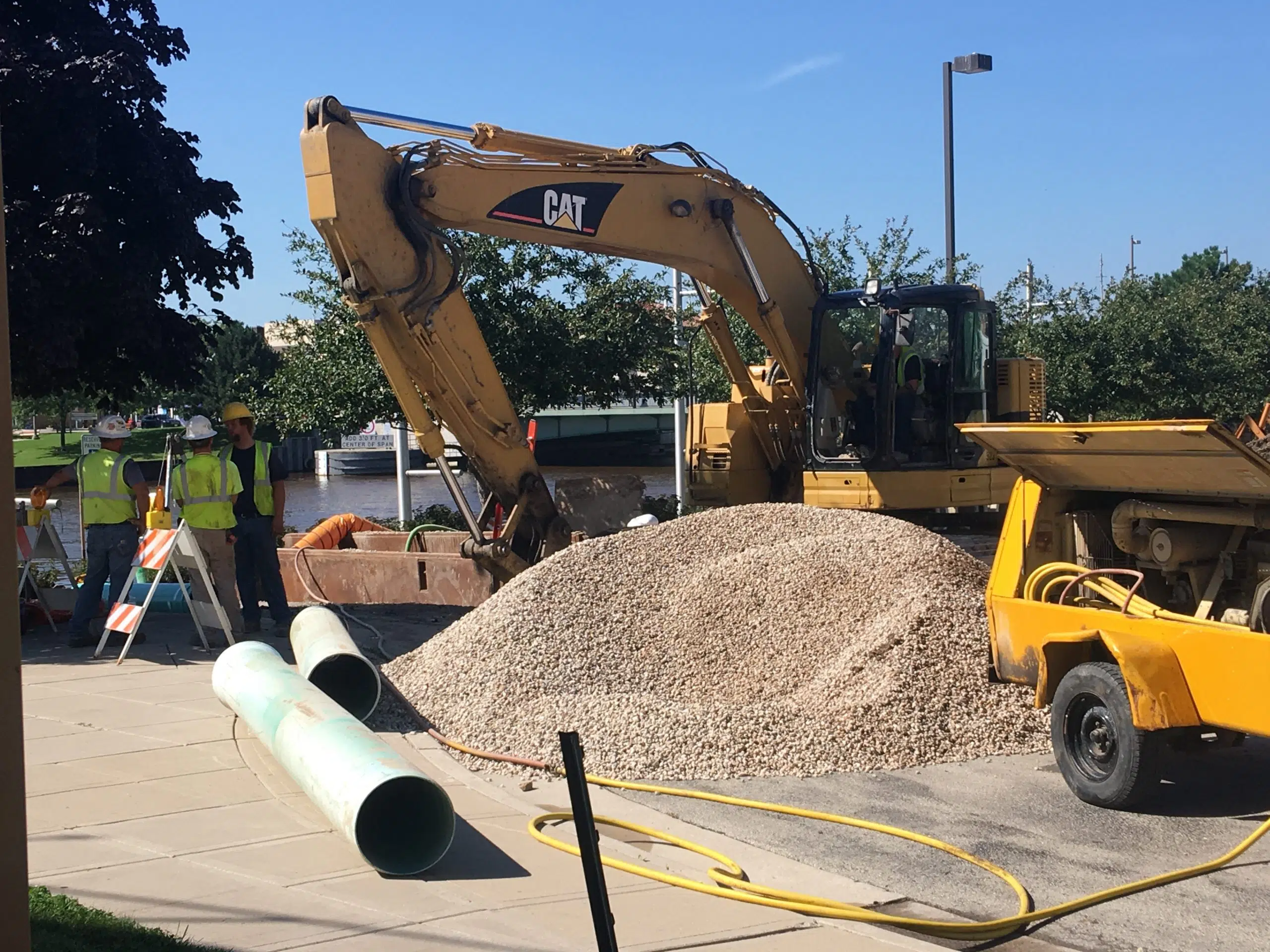 Crews are on hand at the Wisconsin Maritime Museum, fixing the storm drain and sinkhole in the parking lot that resulted from last weeks heavy rainfall. The right lane of eastbound traffic on Maritime...