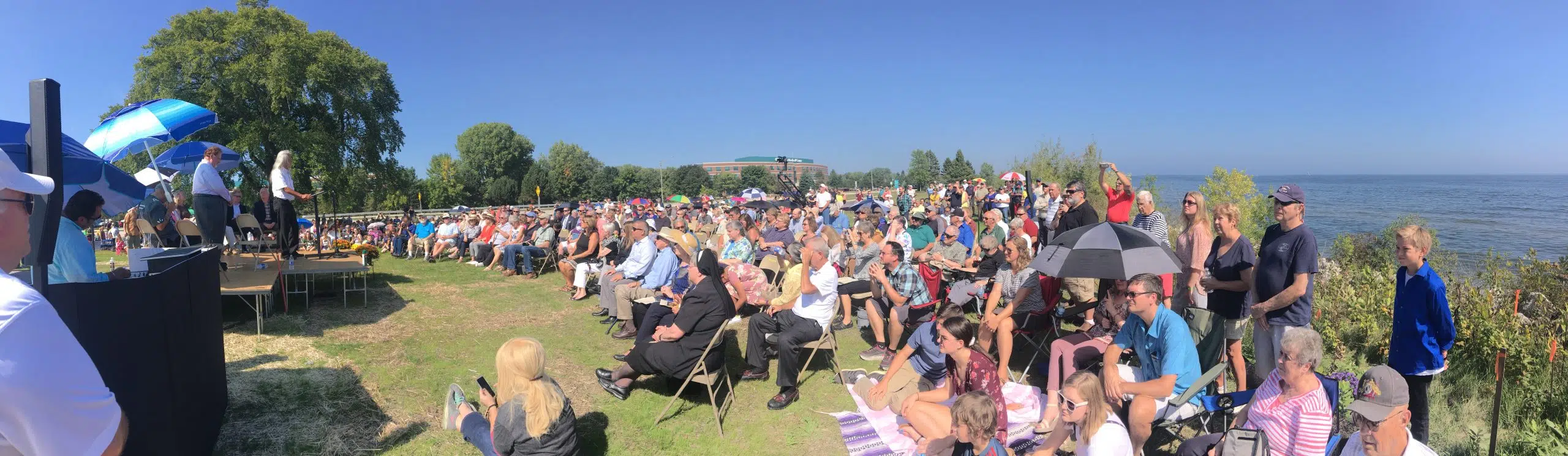 On a cloudless 75 degree Sunday, with only a light breeze coming off of Lake Michigan, hundreds of people gathered at the border of Manitowoc and Two Rivers for the dedication ceremony for the Spirit ...